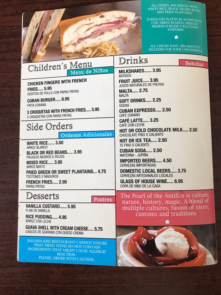 Havana Kiss Cuban Cafe & Restaurant Menu